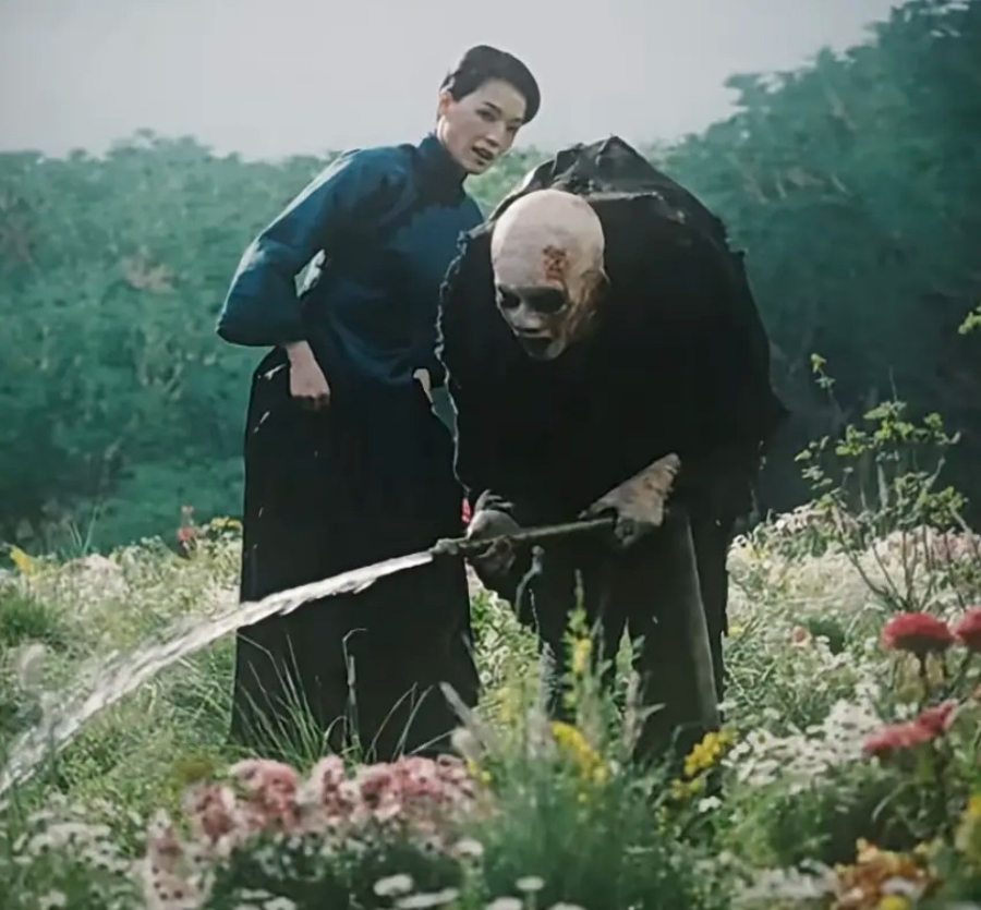 女主角为了寻找男主角进入鸦片馆,一脚踏入20世纪初德国表现主义电影的样板房,旋转楼梯、怪异的几何图形和白墙上层叠的诡异影子,这是在复刻《卡里加里博士的小屋》。她找到的模样可怖的“迷魂者”,既是苍白的“诺斯费拉图”(吸血鬼)又是痛苦的“弗兰肯斯坦的怪物”。表现主义电影的片场里偶尔混入法国导演梅里爱的《月球旅行记》道具,妖娆的东方姑娘把看客带进了华语默片《盘丝洞》的奇景,男女主角温情的片刻是重演卢米埃尔第一部有情节的短片《水浇园丁》。